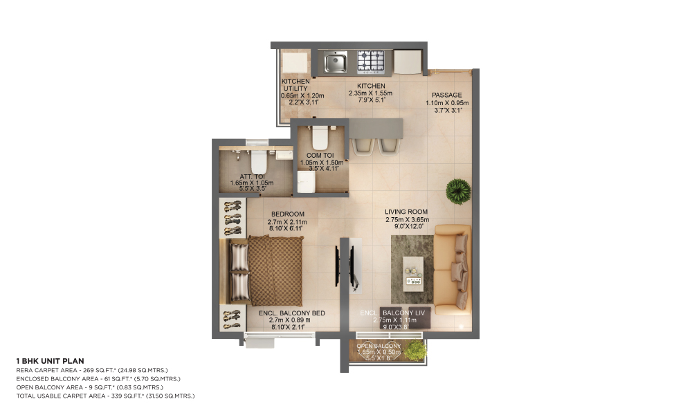 1 & 2 BHK Starting at ₹ 38.49 Lakhs* (All in)